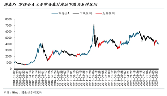 注:文中所探讨的市场底对应的下跌与反弹区间如下图和下表所示,合计6次,平均下跌时间15个月,上涨时间6个月。